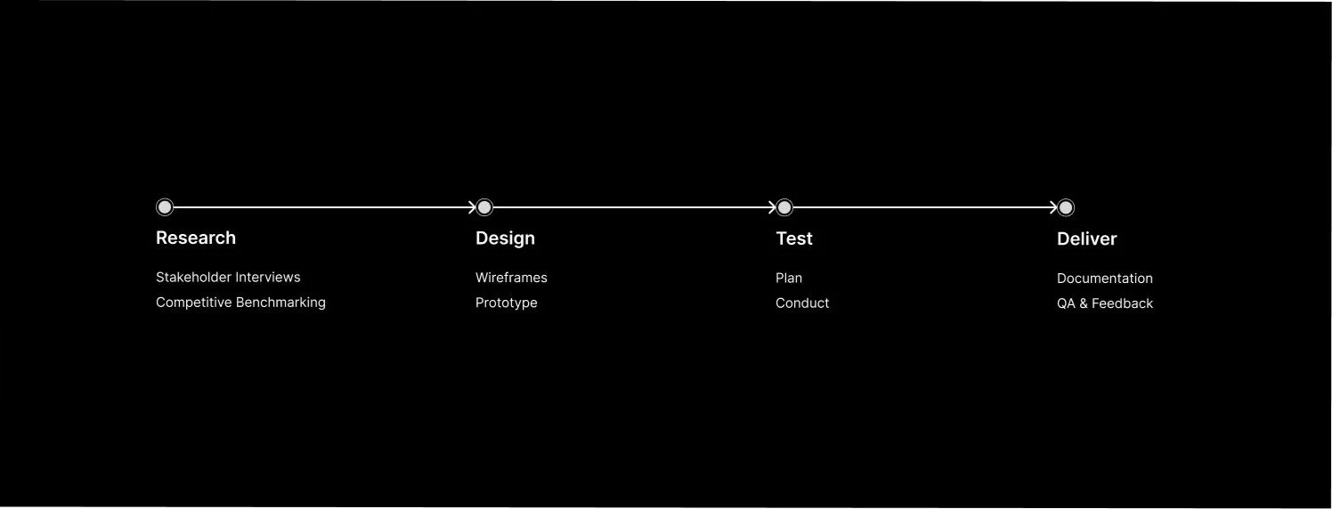 Wireframes • Style Guide • High fidelity UI designs and prototypes • User testing, plan & execution.