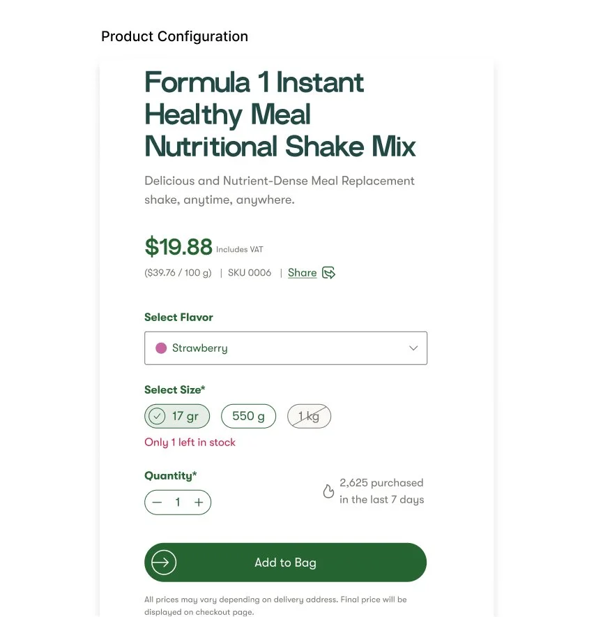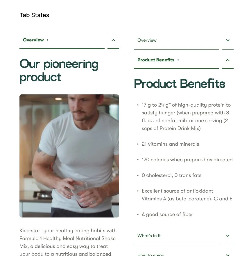 Structured product details into user-friendly sections, prioritizing key elements like benefits, usage instructions, and ingredients. Added interactive features such as expandable tabs and nutritional breakdowns for quick access to relevant information.